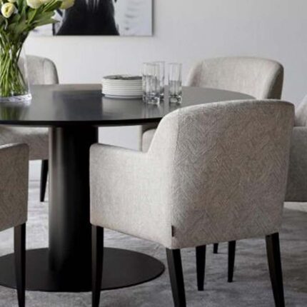 Moon is een heerlijke eetkamerfauteuil. Een heerlijk zitmeubel voor een unieke eetkamerset. Samen met tafel serie Buddha van Passe Partout, wordt natafelen naar een hoger niveau gebracht. In onze showroom vindt u Moon in een prachtige LSB stof, set van 6.