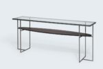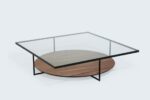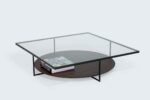 Het model BiBi kenmerkt zich door de combinatie van rechthoekige en ronde of ovale vormen. Het bovenblad is gehard 12 mm glas, het frame 12×12 mm RVS of gepoedercoat staal en de onderbladen kunnen worden uitgevoerd in diverse fineersoorten en beits- of lakkleuren.