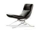 Opvallend detail is het frame dat aan de zijkant bewust in het zicht is gelaten en de vloeiende vorm van de fauteuil benadrukt.