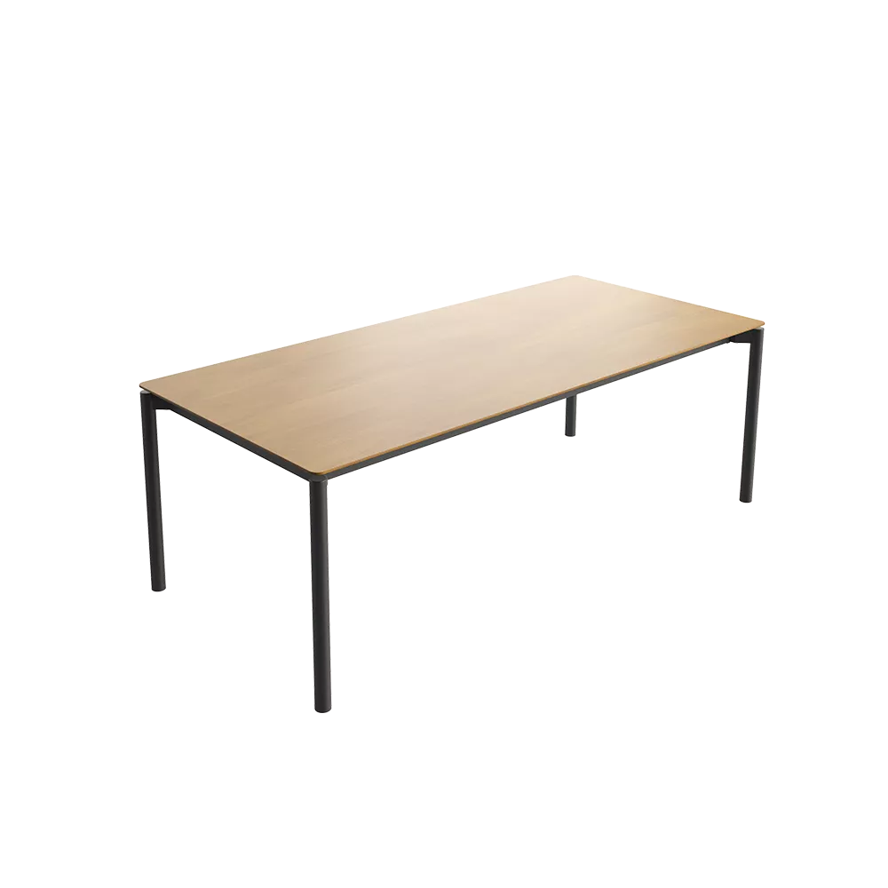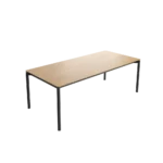 Deze grote massief houten tafel zonder verlengstukken is de essentie van elegantie. Eenvoudig, sober en klassiek, past ze in elke ruimte, zowel professioneel als privé. De tafel heeft een blad in beuk, eik of notelaar en een zwart gelast metalen frame. Dankzij de royale afmetingen en het grote blad biedt ze plaats aan 6, 8 of zelfs 10 personen voor een zakelijke bijeenkomst of een gezellig familiediner.