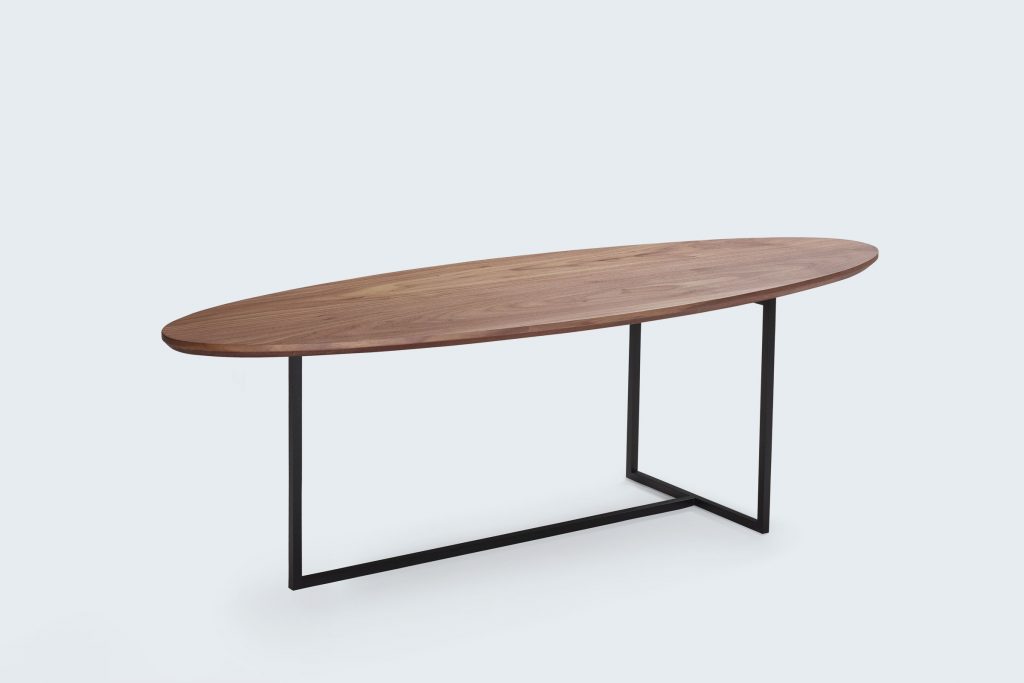 Seven dankt haar naam aan de vorm van haar stalen poten. Ze vormen in combinatie met het luxe, massief houten blad een prachtige designtafel die al jaren hoge ogen gooit. Mogelijk in alle houtsoorten en kleuren uit de bert plantagie-collectie.